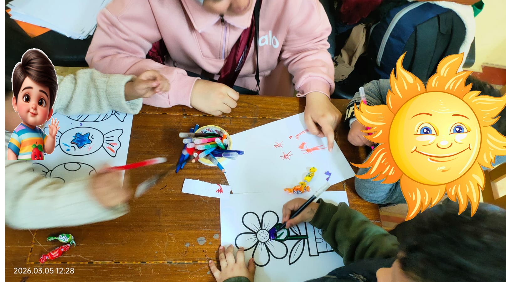 شهدت الزيارة مجموعة متنوعة من الأنشطة التفاعلية والتعليمية، حيث شاركت الطالبات من فريق "إشراقة" في تقديم فعاليات الرسم والتلوين لتطوير مهارات الأطفال الإبداعية، إلى جانب تقديم عروض مسرح العرائس التي أضفت جوًا من المرح والتفاعل للأطفال. كما شهدت الفعاليات لمسات فنية مميزة، حيث قامت طالبات الكلية برسم تلوينات ورسومات جميلة على وجوه الأطفال وأيديهم، أضفت جوًا من المرح والإبداع، وساهمت في تعزيز التفاعل بين الأطفال والمتطوعات، وجعلت الأنشطة أكثر متعة وتفاعلاً.