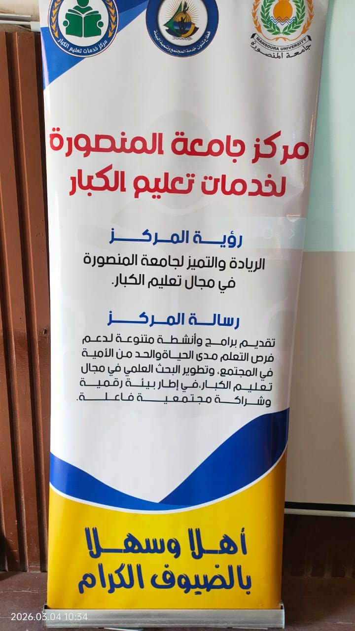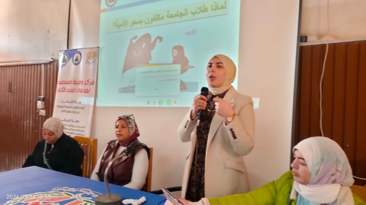 وفي إطار خطة مركز جامعة المنصورة لخدمات تعليم الكبار للتوعية الطلابية بإجراءات المشاركة في مشروع محو الأمية بالجامعة نظمت كلية التربية الطفولة المبكرة جامعة المنصورة ندوة بعنوان "أهمية_محو_الأمية" بالتعاون مع مركز جامعة المنصورة لخدمات تعليم الكبار، يوم الإربعاء الموافق ٤/ ٣/ ٢٠٢٦ م الساعة العاشرة صباحًا.
